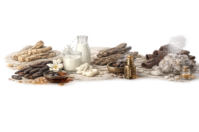 Tonka Bean Absolute, Vanilla Milk, Oud, Ambergris Accord
