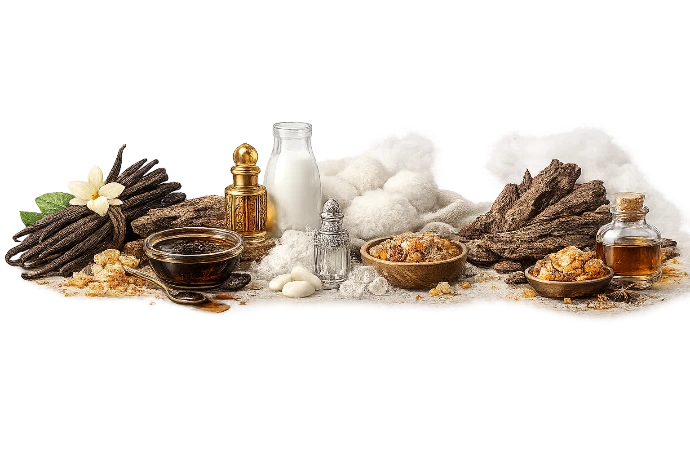 Vanilla, Guaiacwood, Musk, Oud, Amber