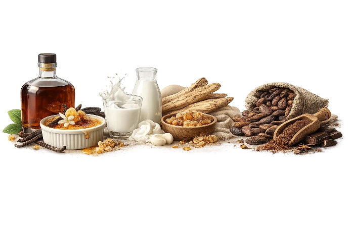 Crème Brûlée, Milky Accord, Cashmere Wood, Cocoa Beans